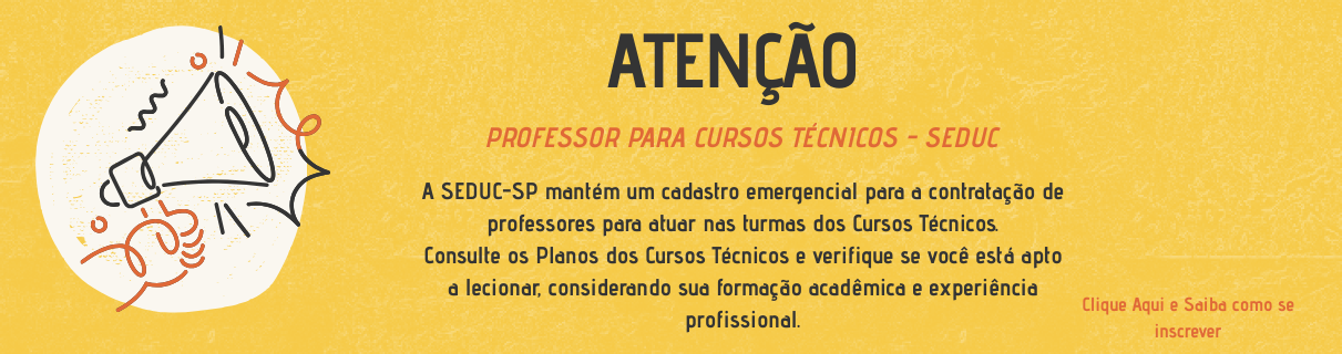 - Processo Seletivo para Docentes (Temporário) – Educação Técnica Profissional de Nível MédioEdital de Abertura de Inscrições – Clique Aqui